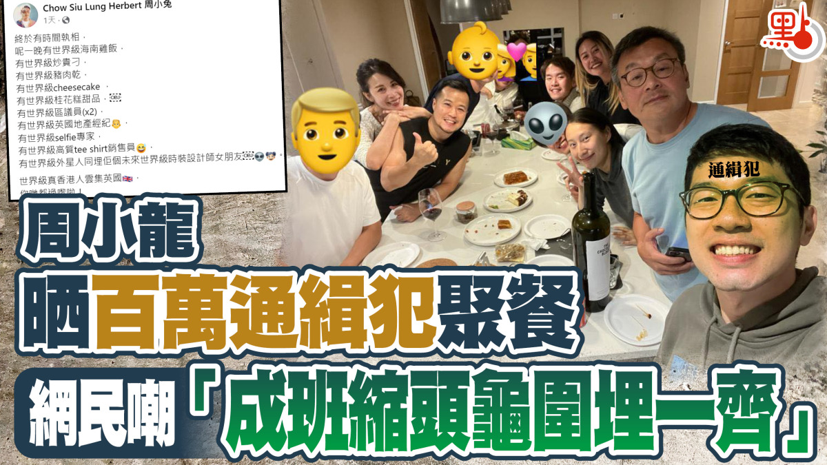 不少反中亂港分子潛逃海外後,仍不甘寂寞企圖繼續維持曝光率,Chickeeduck創辦人周小龍就是其一。周小龍到海外後依然高調,經常在社交平台上自吹自擂,他日前又晒出一張合照,相中有兩名被警方國安處通緝的人士,包括懸紅100萬元的「香港眾志」創黨主席羅冠聰,以及前區議員劉珈汶喇。有網民譏諷他們「蛇鼠一窩」、直指「感謝佢出帖報料有邊啲人同百萬通緝犯一齊。」