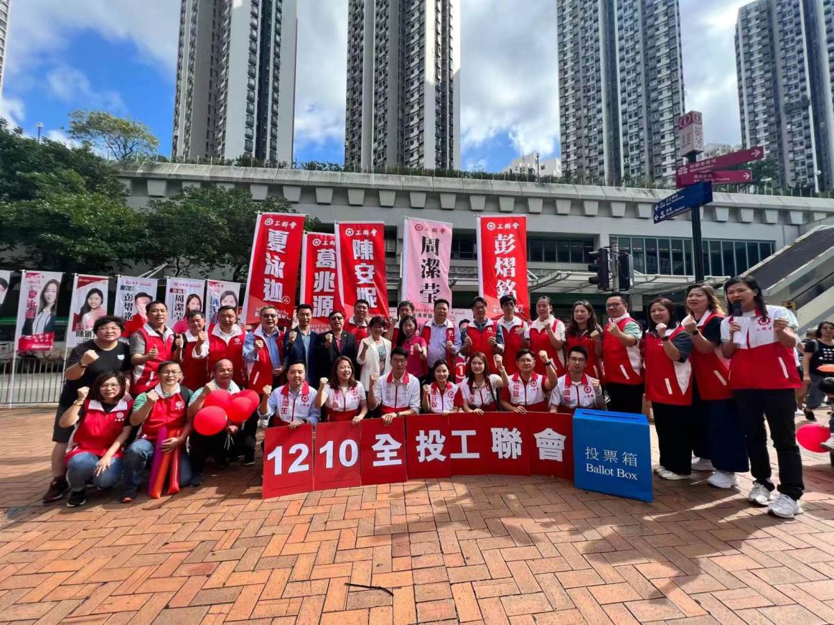 工聯會政務委員會副主任歐志輝、工聯會立法會議員陳穎欣帶領7名參選人亮相,其中有5人參加地方選區選舉,2人參加地區委員會界別選舉,包括:荃灣西北區1號候選人葛兆源、荃灣東南區4號候選人夏泳迦、葵涌西區1號候選人陳安妮、葵涌東區1號候選人周潔莹、青衣區2號候選人彭熠銘,以及地區委員會界別選舉荃灣區2號候選人孔潤生、葵青區10號候選人李偉樂。