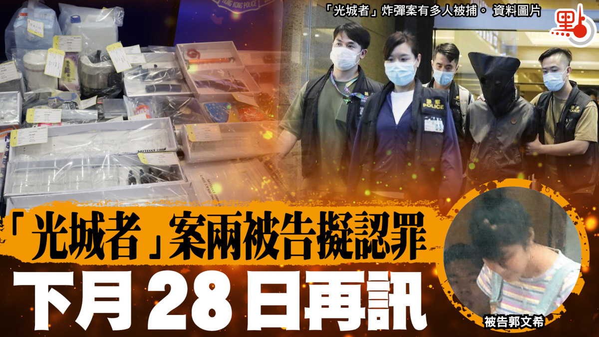 昨日的聆訊處理已承認交替控罪「串謀導致爆炸」罪的郭文希(現年 20歲)、已承認「串謀恐怖活動罪」的何裕泓,以及認罪尚未答辯的陳凱量(24歲,司機)和涉向「光城者」提供資金的張昊揚(23歲,學生)。4人原訂上周六在高等法院處理求情及判刑。但其中張昊揚今年 4 月被起訴,辯方指不久前接手本案,需時處理文件,但確認張昊揚會承認控罪。法官強調,本案拖延已久,若他認罪但爭議案情,須排期進行「紐頓聆訊」,甚或審訊。辯方表示將會是最後一次押後,法官終把案件押後至 12月 28日。至於另外 3名被告的案件,同樣押後至 12月 28日處理,其中陳凱量續准保釋,何裕泓繼續還押,郭文希則正就另案在教導所服刑,沒有保釋申請。