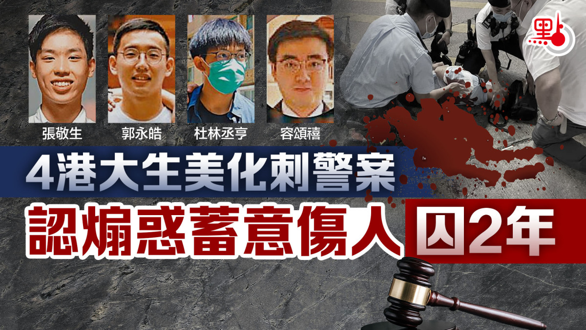四名港大生兩年前因為表揚襲警兇徒,美化兇徒「為香港和大多數港人光榮犧牲」,涉嫌觸犯香港國安法「宣揚恐怖主義罪」,經過兩年漫長審判過程後,最終四人選擇承認交替控罪「煽惑他人有意圖傷人」,最近被法院判囚兩年。