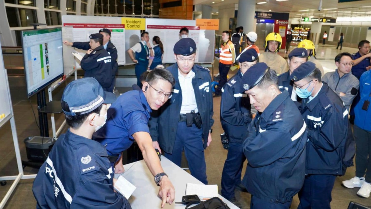 此次聯動演習模擬一輛機場快綫列車受嚴重事故影響,導致大量傷者需要即時撤離及救援,繼而展開相關的跨部門拯救行動。演習期間,警方有效地協調多部門資源進行快速拯救,總區應變大隊亦到場指揮整個行動。