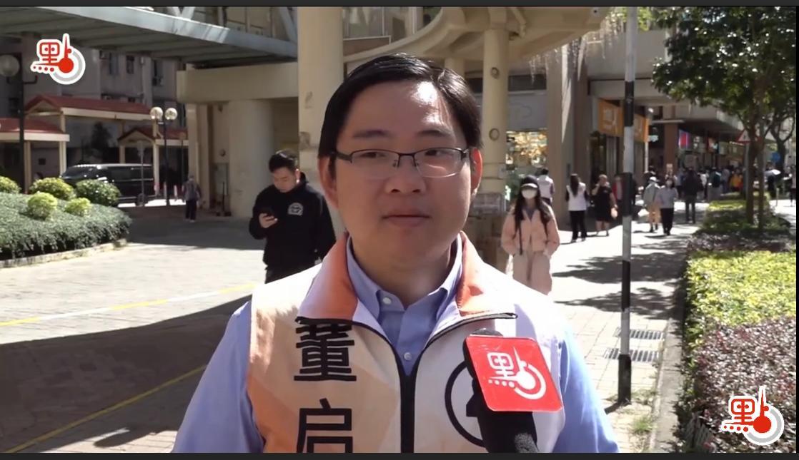 將軍澳南區的候選人董启真為了讓區民加深對自己的印象,他一日內往往要在10個街站之間奔波。聊到和市民互動的感受,他表示,市民有時亦會主動過來聊天,對此感到很開心,「會聊到物價問題,以及哪買菜比較好。」