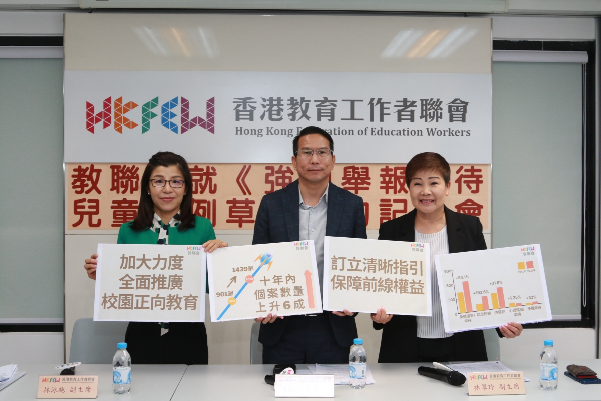 草案一旦通過,懷疑虐待兒童個案將會增加,到時緊急及非緊急兒童宿位將亟待需求,須加大力度增加配套。政府亦須增加負責調查虐兒的專職警員及社署人手,以應付預期急增的個案。教聯會建議,政府應在明年檢視及評估有關增加人手後的成效,並適時作出調整。