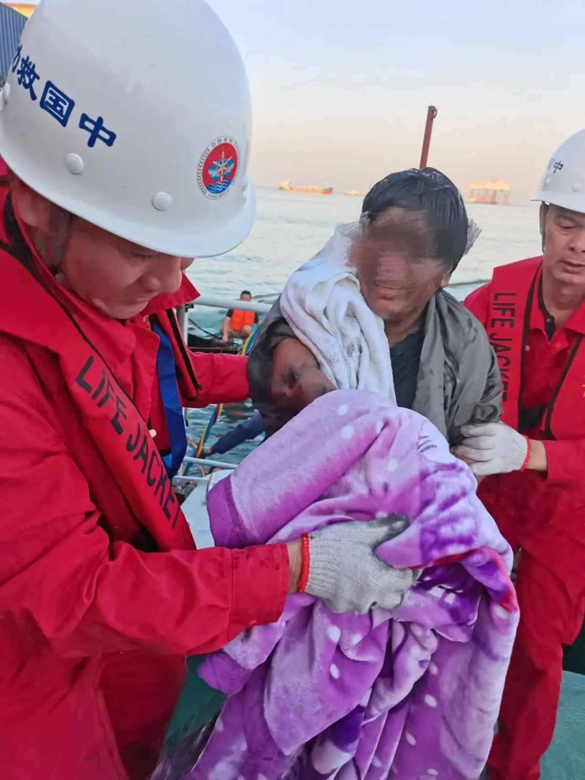 6時40分,「南海救321」艇抵達事發水域。現場開展風險評估後,為避免次生意外,立即組織對翻扣漁船進行綁定加固處理,由救助潛水員下水搜尋。「救助蛙人」仔細探摸,數分鐘後便發現2名遇險人員。經救助人員2人2次下水施救,被困在翻扣船機艙中的遇險中年夫妻倆先後被營救上岸。