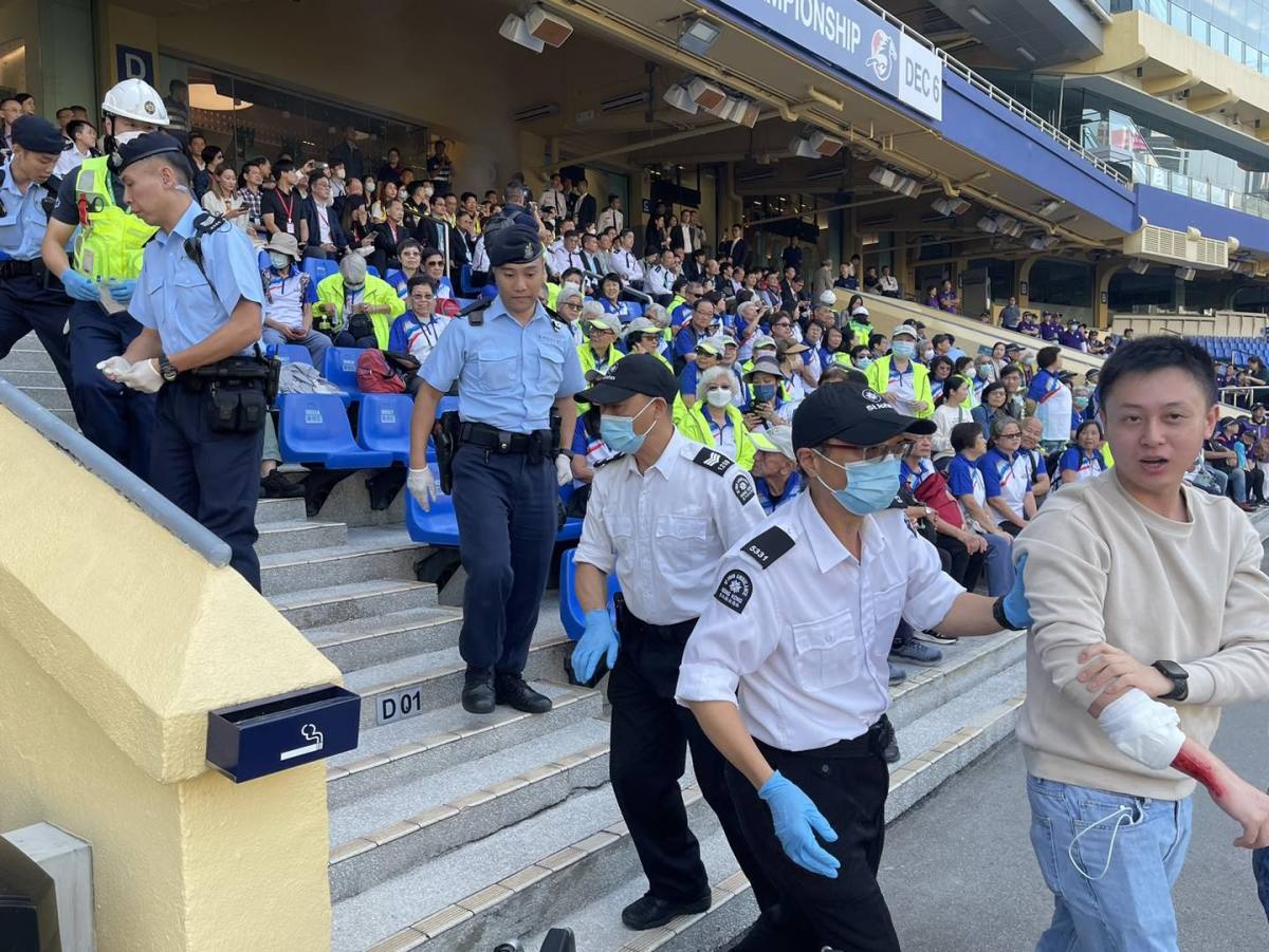 【點新聞報道】警務處港島總區今日(23日)下午聯同消防處、醫院管理局、香港賽馬會、聖約翰救傷隊及香港危難應變醫學會在跑馬地馬場舉行代號「碎針」(BROKENPIN)的跨部門重大事故演習,模擬一件大規模突發火警事故,旨在加強警方與各持份者的協作,提升部門的應變能力及救援效率。
