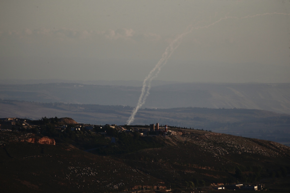 加沙地帶停火協議正式生效。圖為11月21日,在黎巴嫩希亞姆附近,黎巴嫩真主黨向以色列方向發射火箭彈。(新華社)