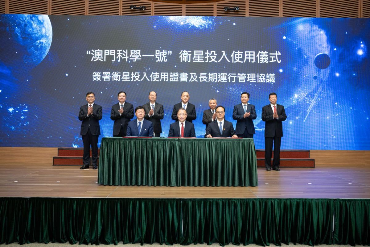 澳門特別行政區行政長官賀一誠、中央人民政府駐澳門特別行政區聯絡辦公室主任鄭新聰、國家航天局局長張克儉出席投入使用儀式,共同見證簽署「澳門科學一號」衛星投入使用證書、長期運行管理協議。國家航天局總工程師李國平出席投入使用儀式。