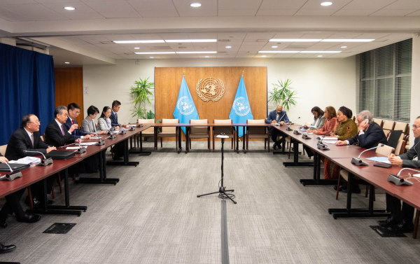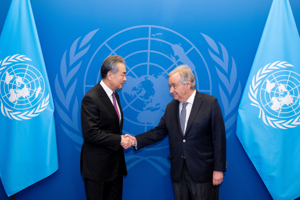 當地時間2023年11月28日,中共中央政治局委員、外交部長王毅在紐約聯合國總部會見聯合國秘書長古特雷斯。