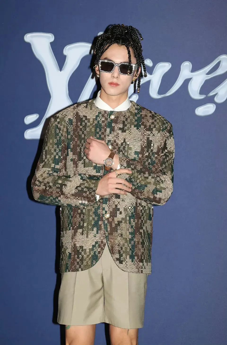 郭富城身穿LV經典印花套裝搭配黑超↓