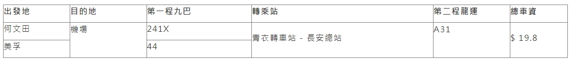 以何文田及美孚為例,現時未有全日機場巴士路線服務,如乘客想乘搭巴士到機場,可以利用九巴及龍運的網絡,享有「搭兩程,俾一程」優惠。