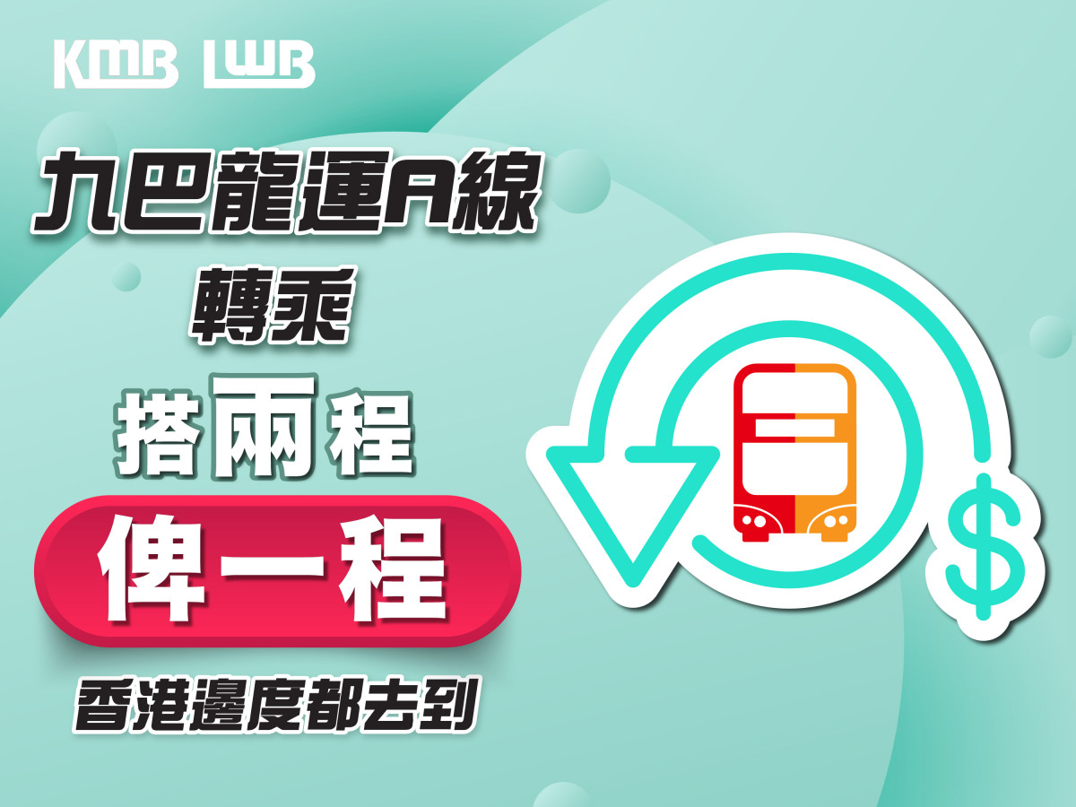 發言人指,由12月3日至明年2月25日,乘客以相同八達通或電子支付方式,乘搭九巴路線後轉乘龍運A線前往機場或港珠澳大橋香港口岸,或由機場或港珠澳大橋香港口岸乘坐龍運A線,再轉乘九巴路線,兩者均享有「搭兩程,俾一程」的轉乘優惠,較低車資的車程可獲減免。適用路線包括任何九巴獨營路線及常規通宵路線(假日旅遊路線、非常規特別路線、馬場路線、K12、K14、K17及K18、龍運NA線除外)。
