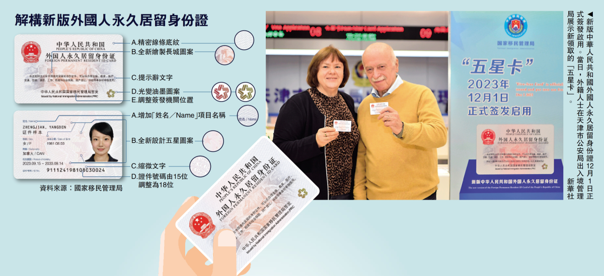 國家移民管理局相關負責人介紹,「五星卡」由國家移民管理局簽發,是經批准在中國境內永久居留外國人的法定身份證件。持證人可在需要證明個人身份的場合作為個人身份憑證單獨使用,毋須再出示其外國護照。「五星卡」採用更為先進的防偽技術,增強了個人信息保護和數據安全性。國家移民管理局會同有關部門大力推進各相關行業領域應用系統、設施設備的適配性升級改造,便於持證人在交通出行、生活消費、金融通信等公共服務、政務服務領域和互聯網平台使用。國家移民管理局相關負責人表示,簽發啟用「五星卡」是國家移民管理局服務保障國家高水平開放,提升在華外國人管理服務信息化水平的重要舉措,有利於更好服務海外人才來華投資興業和工作生活。