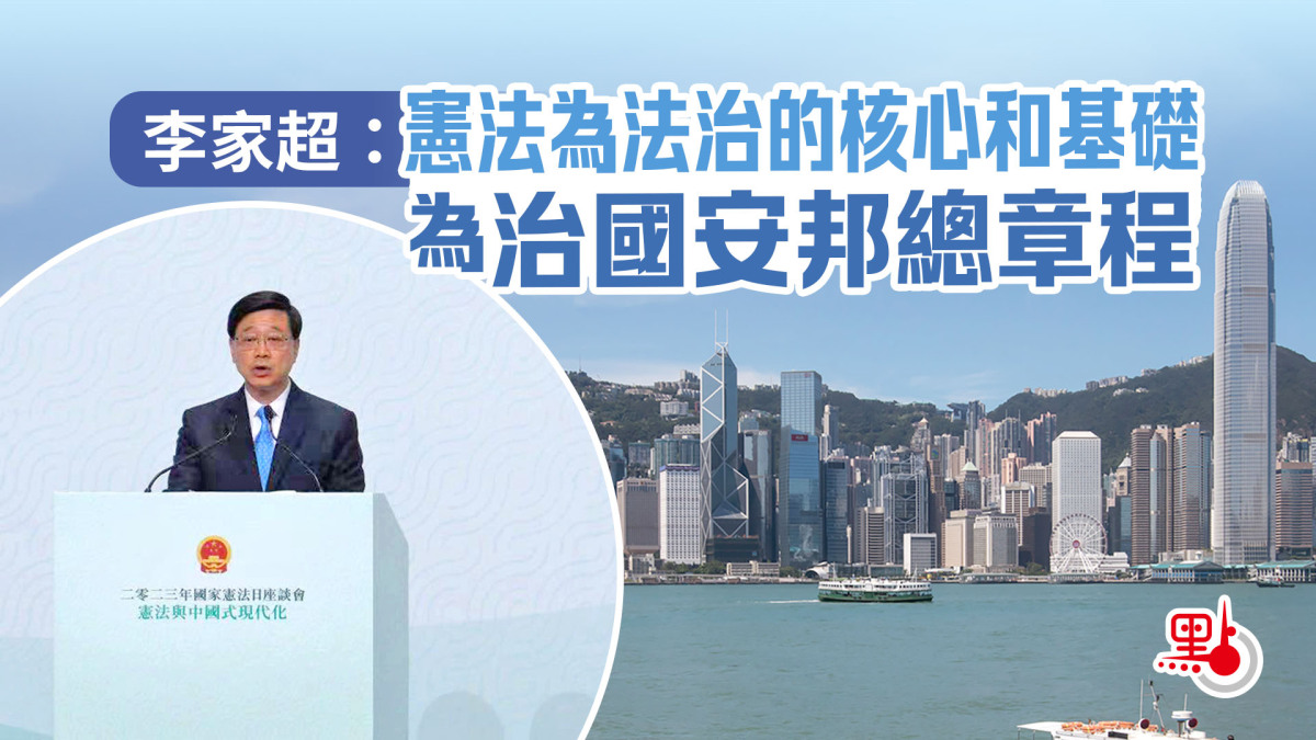 李家超提到,香港在「一國兩制」下擁有背靠祖國、聯通世界的獨特優勢,為國際金融、航運、貿易中心,法治傳統源遠流長,營商環境自由開放,是世界上最具競爭力的經濟體之一,這些國際化優勢的基礎和保障為憲法和基本法共同構成香港特區的憲制秩序,中國式現代化的道路要以憲法作保障,同樣,香港特區走「一國兩制」這一條歷史上的嶄新道路,也一定要以憲法和基本法作保障。