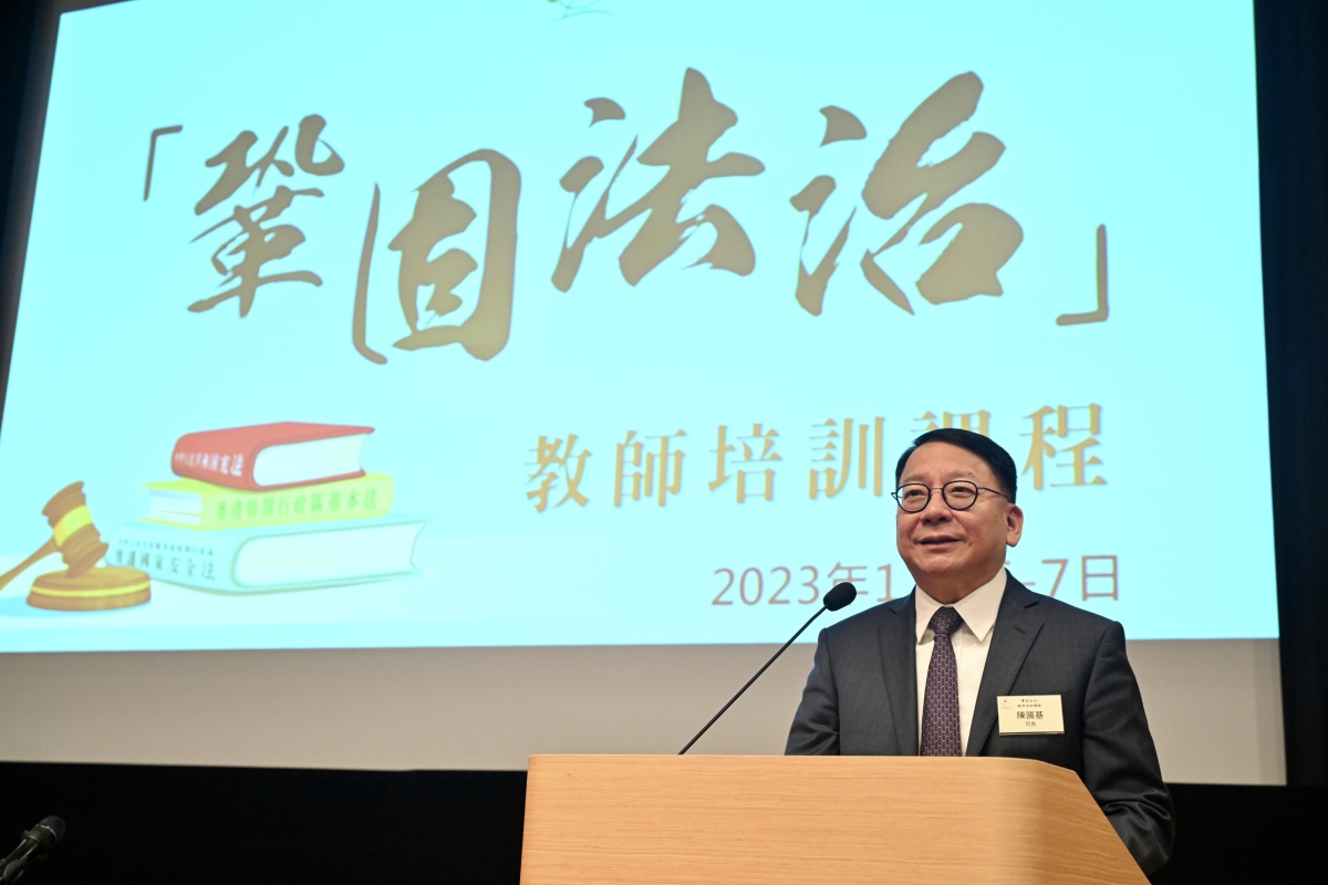 【點新聞報道】政務司司長陳國基今日(5日)出席「鞏固法治」教師培訓課程開課禮並致辭。陳國基指,是次為期三日的培訓課程,邀請到多位重量級的專家和學者,講解國家憲法、基本法和「一國兩制」等重要內容,讓各位加深認識國家憲制秩序、香港法律制度和法治精神等,繼而可以應用到日後教學工作中。