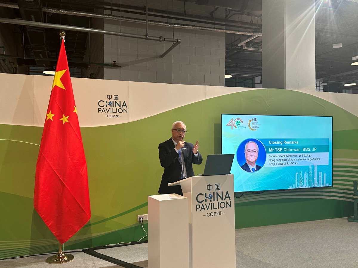 【點新聞報道】環境及生態局局長謝展寰昨日(迪拜時間6日)在阿拉伯聯合酋長國迪拜繼續參與《聯合國氣候變化框架公約》締約方大會第28屆會議的活動,並在中國角邊會論壇致閉幕詞。