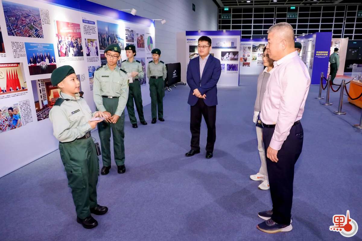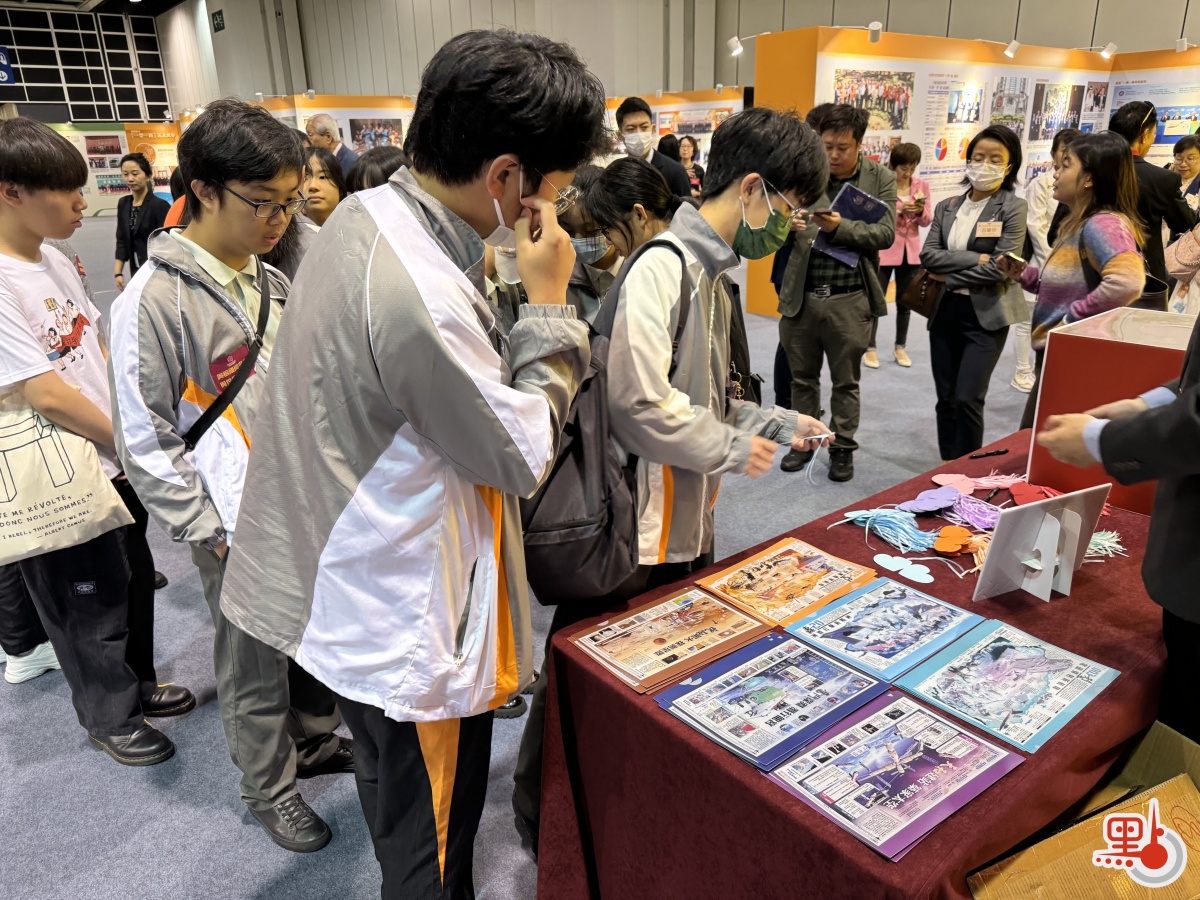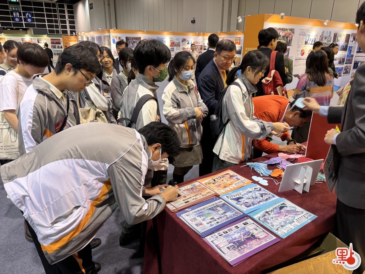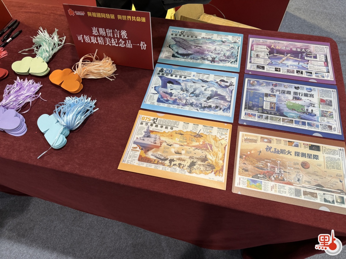 展覽吸引大量人流,現場學習氛圍濃厚。不少港生和嘉賓踴躍參觀展覽,和講解員積極互動。在留言區附近,許多學生被精美的紀念品吸引,紛紛留言,寫下觀展感受。