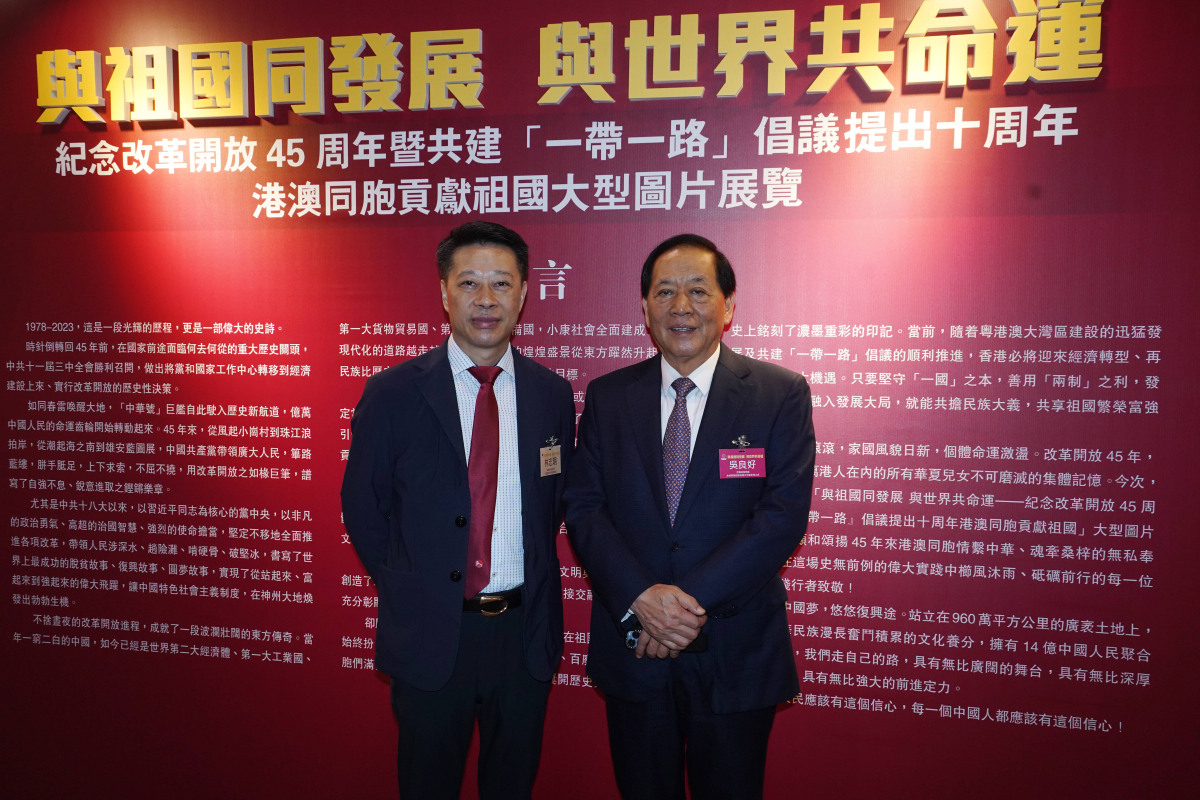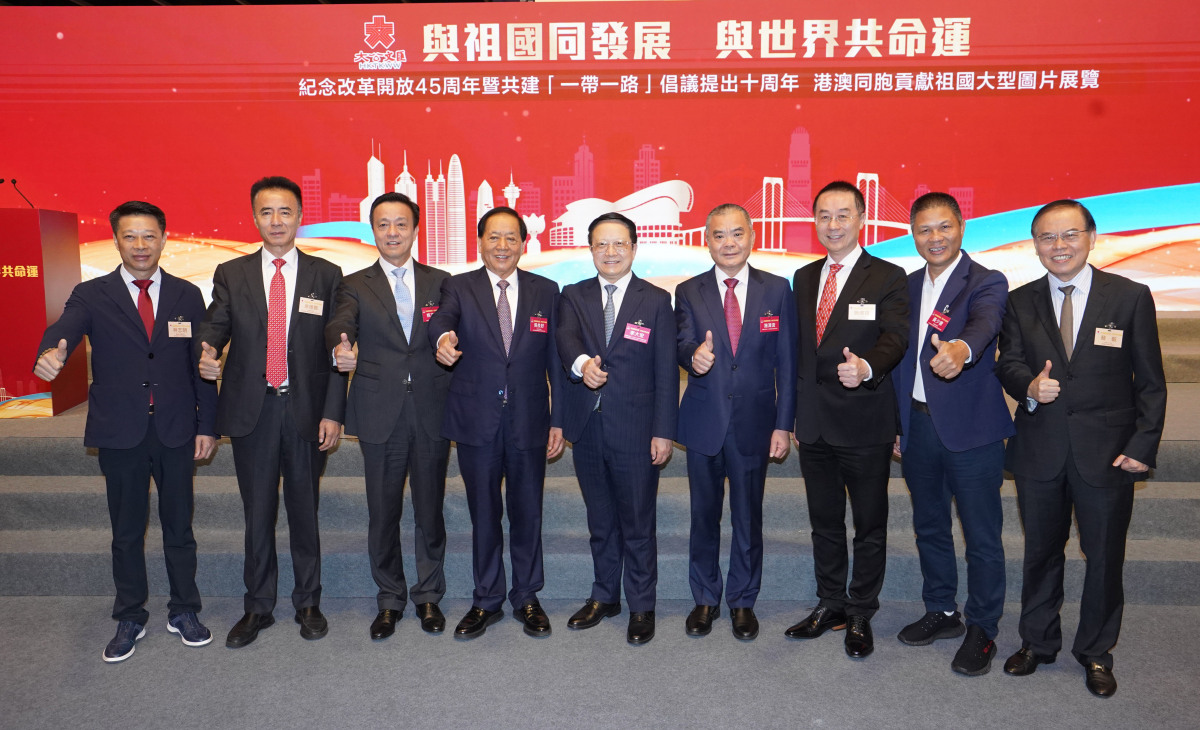 「與祖國同發展 與世界共命運——紀念改革開放45周年暨共建『一帶一路』倡議提出十周年港澳同胞貢獻祖國大型圖片展覽」開幕禮,今日(11日)上午在香港會議展覽中心隆重舉行。展覽通過近600幅記錄生動歷史瞬間的圖片及相關文字材料,以小故事講述大歷史,以小細節呈現大時代,向香港市民全方位展示港澳同胞積極參與國家改革開放建設與「一帶一路」倡議,以及港澳商企、社會傑出領袖、愛國商會社團、在港中資企業發揮的重要橋樑作用和重大貢獻。香港特區行政長官李家超以視頻形式致辭指出,展覽展出的每一張圖片,都記載着國家改革開放45年來,一位位港澳同胞愛國、報國的情操和承擔,希望大家通過這些歷史定格,將愛國心傳承到下一代,繼續為中華民族偉大復興傾付所能。