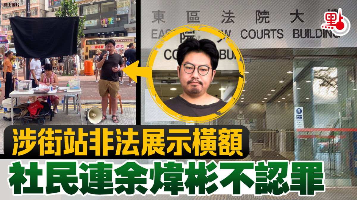 去年9月在銅鑼灣擺街站期間,社民連內務副主席余煒彬、成員「阿牛」曾健成及唐婉清涉展示寫有梁國雄、岑子杰和陳皓桓名字的橫額,三人被票控「未經准許而在政府土地展示/張貼招貼或海報」,曾健成及唐婉清認罪,各被罰款1,000元。余煒彬的案件昨於東區裁判法院再訊。