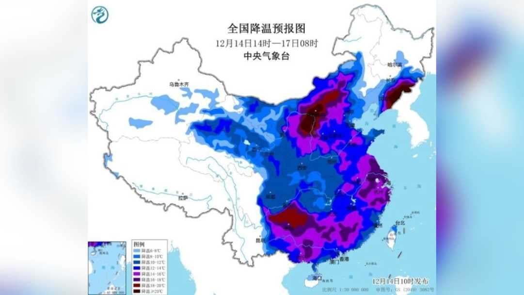根據中央氣象台,今晨新疆、內蒙古和甘肅等地的氣溫較昨日急降6至14度,預計今日至星期日,全國大部分地區將從西向東、再由北向南逐漸降溫8至12度。其中,河北、河南、華南和東北部分地區預計將降溫14至16度,而內蒙古、陝西、吉林和遼寧的部分地區更是預計降溫超過20度。華北和黃淮北部等地區的最低氣溫可能接近或突破歷史同期最低紀錄。