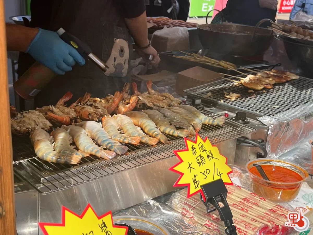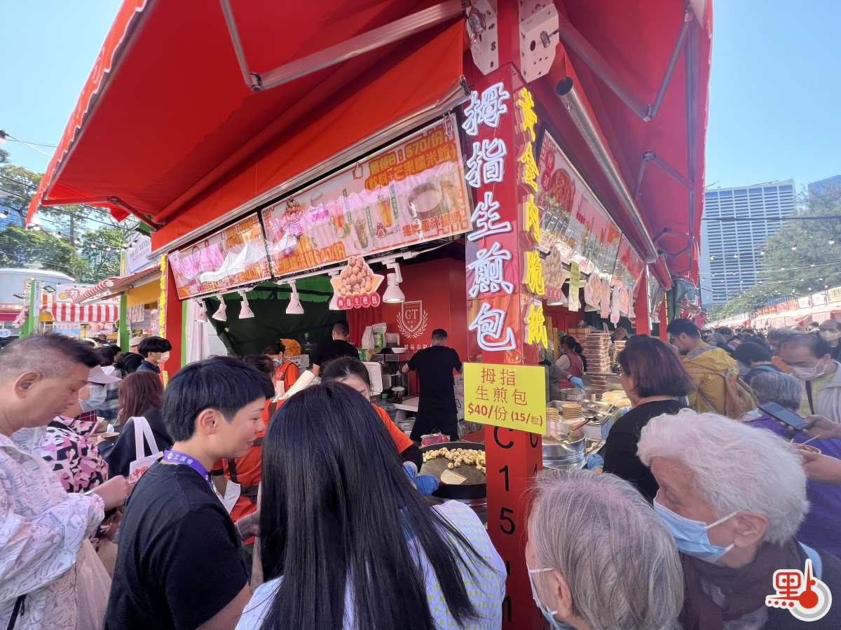 今年工展會一大亮點是恢復熟食區,有燒龍蝦、蛋撻、煎餅煎包等美食,市民可以即叫即製。點新聞記者今日來到工展會,見到熟食區的40元15粒的「拇指生煎包」、50元4只的「泰國大頭蝦」等小食十分受大家喜愛,不少市民在攤位排隊購買後即刻在指定位置就餐,品嘗新鮮出爐的食物。