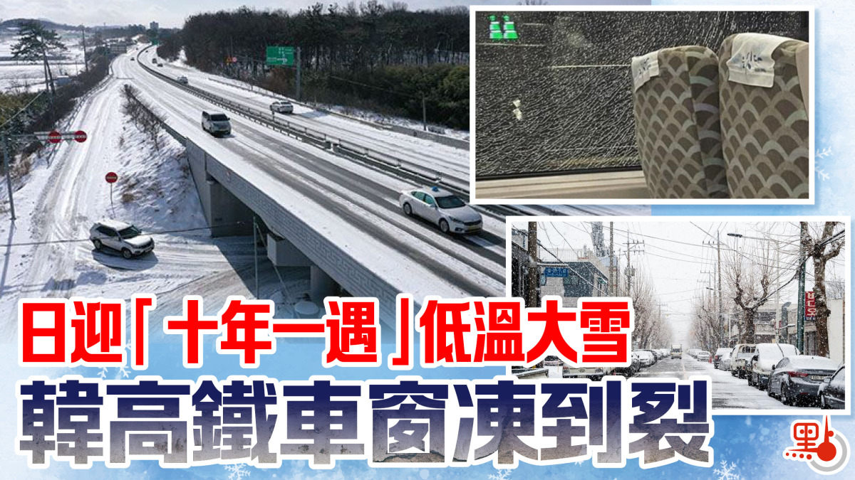 香港近日氣溫急跌,日本和韓國亦受寒流侵襲,日本各地更可能出現12月「十年一遇」的低溫和大雪,部分地區的降雪量恐達往年的3至3.5倍。韓聯社報道,韓國一輛高鐵上周六晚行駛期間,車窗出現裂痕,當時列車載有780多名乘客,無人受傷。負責營運的韓國鐵道公社解釋稱,氣溫急降導致雙層窗戶外側玻璃強度減弱,在列車行駛期間與碎石碰撞,因而產生裂痕。