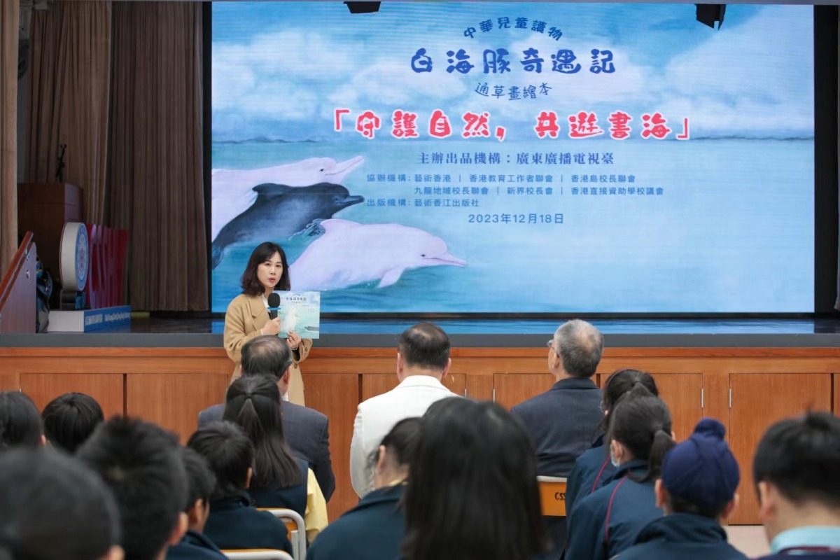 保護生物多樣性主題兒童繪本《白海豚奇遇記》今日(18日)舉行發布會,主辦方前往保良局金銀業貿易場張凝文學校、東華三院李賜豪小學、香港潮商學校進行贈書儀式,得到了同學們的熱烈反應。此繪本由廣東廣播電視台主辦出品,得到藝術香港、香港教育工作者聯會、香港島校長聯會、九龍地域校長聯會、新界校長會、香港直接資助學校議會協辦支持,由藝術香江出版社擔綱出版。