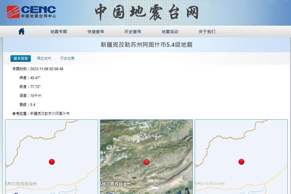 【點新聞報道】中國地震台網正式測定,今日(19日)9時46分,新疆克孜勒蘇州阿圖什市(北緯40.02度,東經77.86度)發生5.5級地震,震源深度10公里。暫時未有傷亡及損毀報告。
