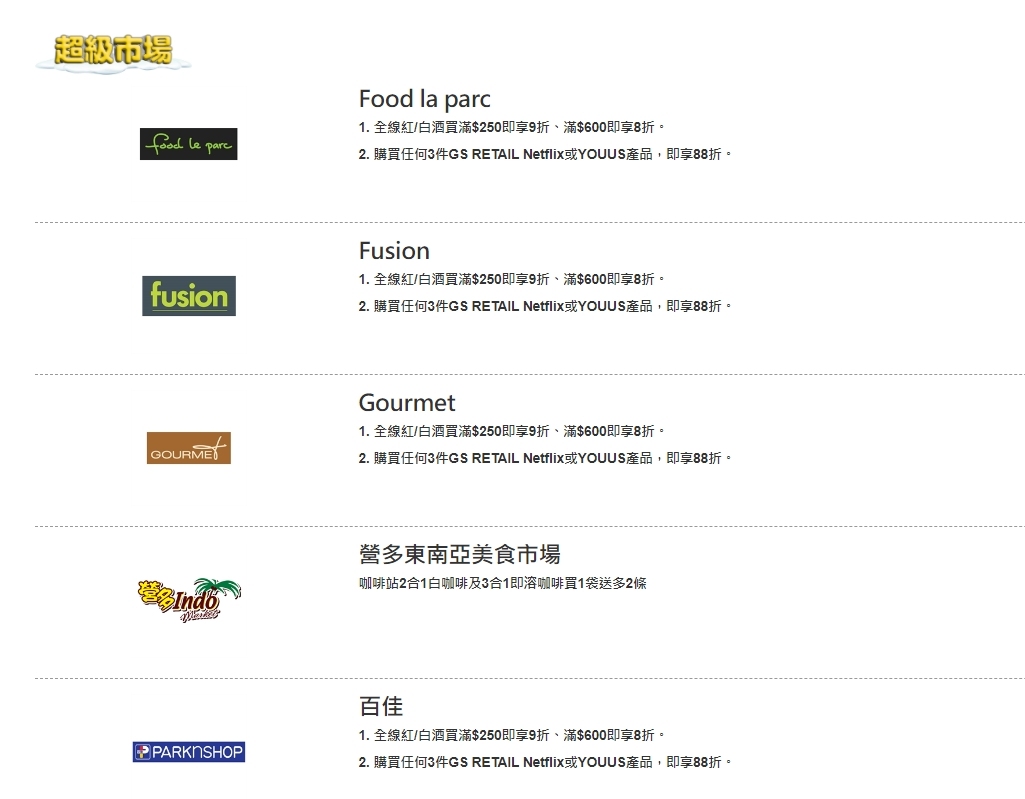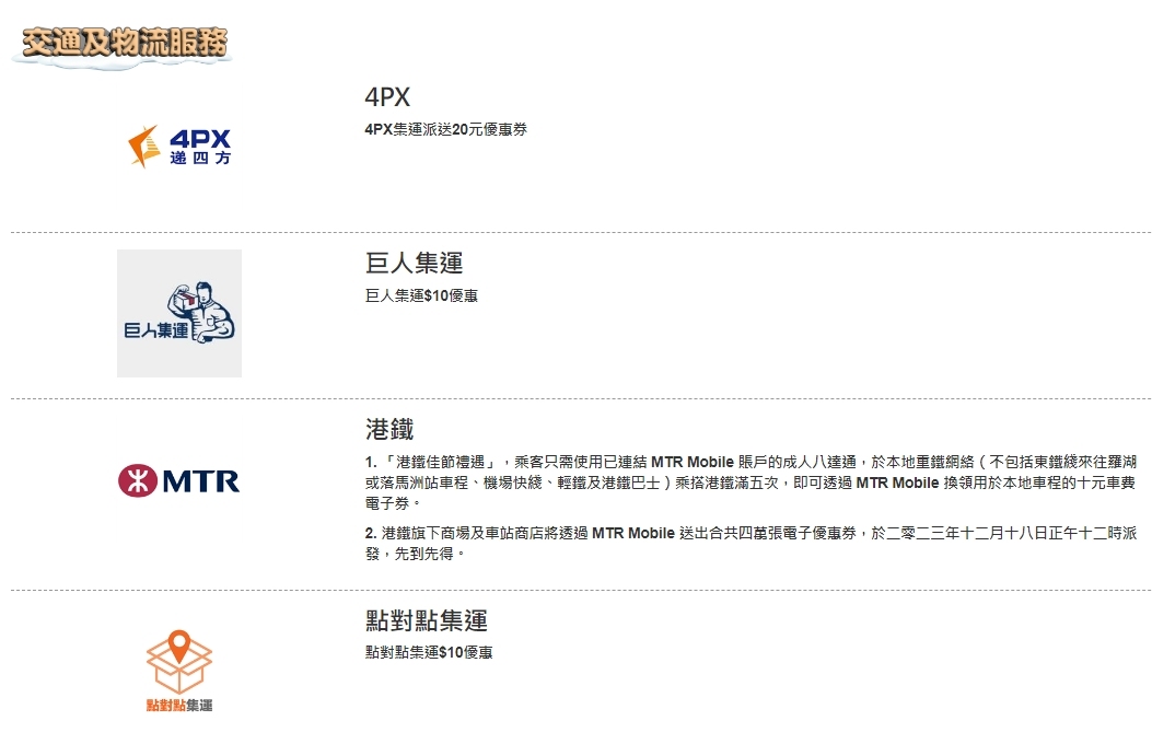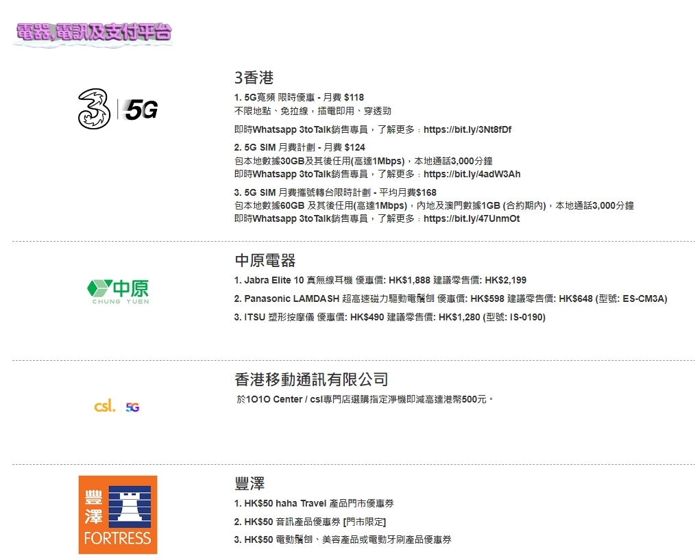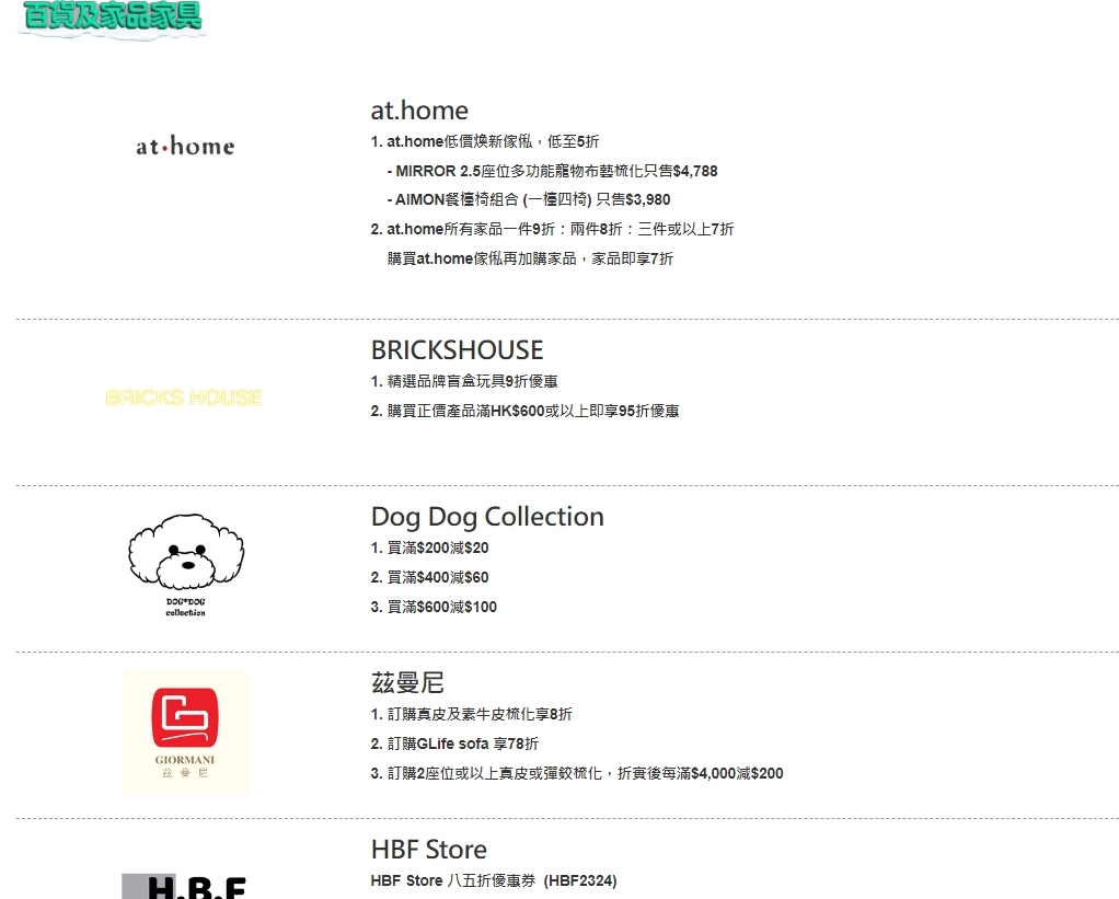 協會說,活動至今已有超過100個品牌商戶、涵蓋超過3000間店舖參與,包括百佳、惠康、牛角、好呷台灣火鍋、PHD、麥當勞、萬寧、屈臣氏、豐澤、SOGO等商戶。有關數目仍持續增加,活動涉及不同零售和餐飲類別,包括餐廳、時裝、眼鏡及鞋履、電器電訊、百貨家品、珠寶首飾、保健產品、化妝品、個人護理用品、超市及便利店等。
