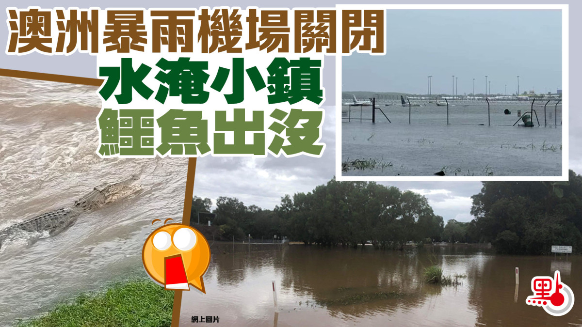 澳洲東北部遭受熱帶氣旋吹襲,昆士蘭州長達400公里的海岸區受災,其中旅遊勝地開恩茲災情嚴重,機場被迫關閉。在該州一個城鎮,被洪水淹沒的溪流中甚至有鱷魚出現。