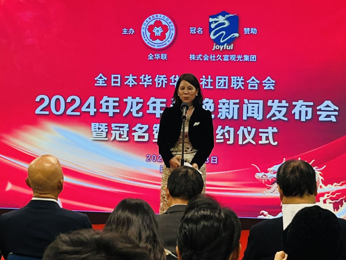 記者日前從全日本華僑華人社團聯合會(全華聯)舉辦的2024年在日華僑華人龍年春節晚會新聞發布會暨龍年春晚冠名贊助簽約儀式上獲悉,即將於明年1月27日舉辦的在日華人龍年春晚,冠名權揭曉,由旅日閩籍知名女僑商劉丹蕻的株式會社joyful久富觀光集團冠名。