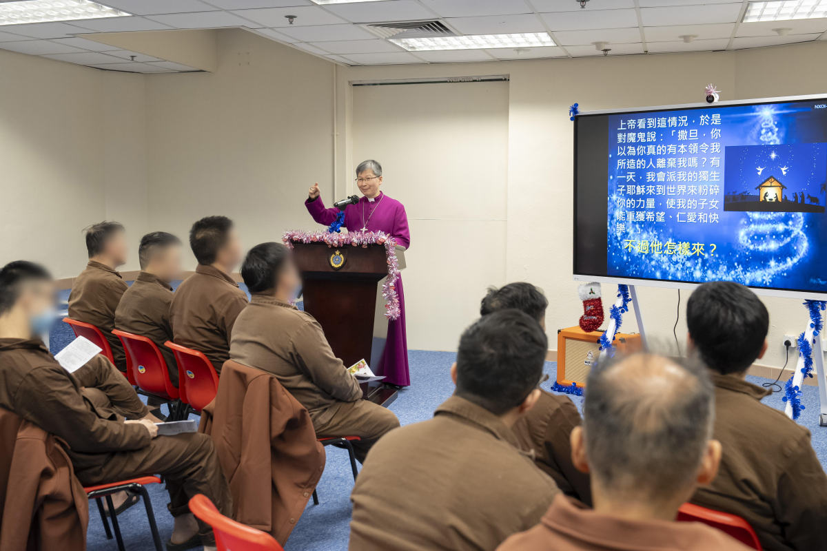 此外,香港聖公會大主教陳謳明亦於12月21日到白沙灣懲教所主持聖誕崇拜,向出席的在囚人士講道及分享宗教信息,給予他們愛心關懷與祝福。