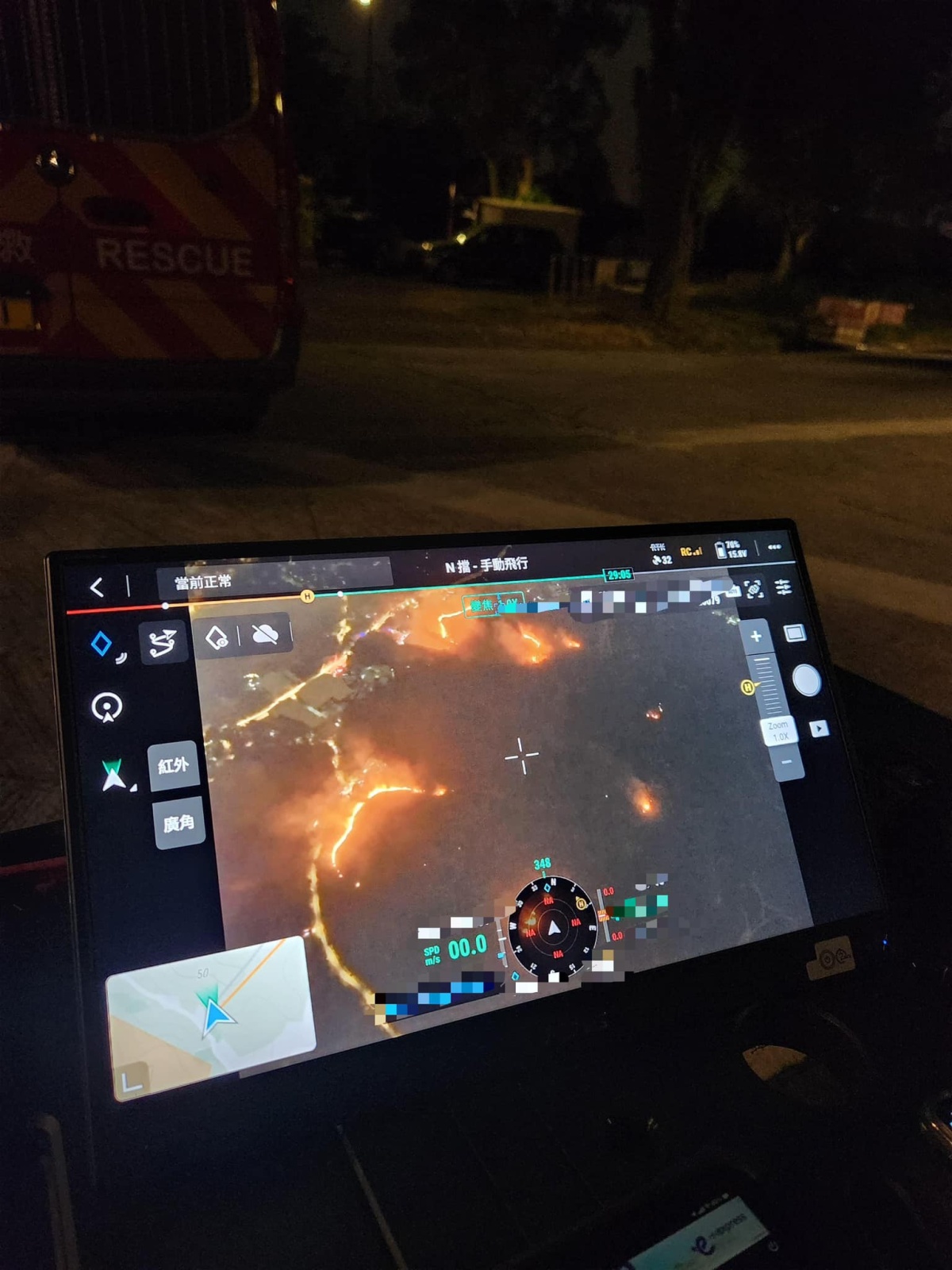 【點新聞報道】香園圍一帶發生山火。今日(27日)晚上7時52分,香園圍老鼠嶺及恐龍坑附近一帶發生山火,更出現約400米長火龍,消防處正進行滅火行動,警方到場並疏散9名村民。