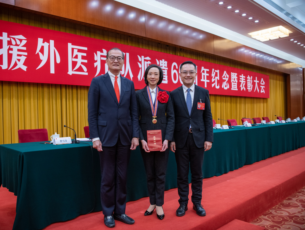 盧寵茂恭賀范婉雯,又指今日親身見證特區醫護人員無畏無懼、克盡己任拯救生命的精神而獲國家表彰,感到非常激動。他說,今年是中國援外醫療隊派遣六十周年,國家主席習近平曾表示,援外醫療工作體現國家熱愛和平、珍視生命,亦為推動構建人類衞生健康共同體作出更大貢獻。特區醫護人員必定會繼續發揮所長,服務國家所需,為國家援外醫療事業作貢獻。