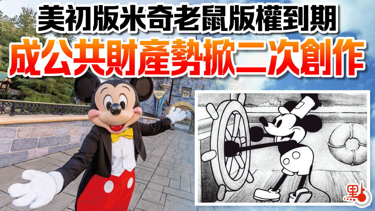 美國流行文化最具代表性的角色「米奇老鼠」,於元旦日正式擺脫迪士尼版權,成為公共財產,意味任何人也可使用,料將掀起二次創作。
