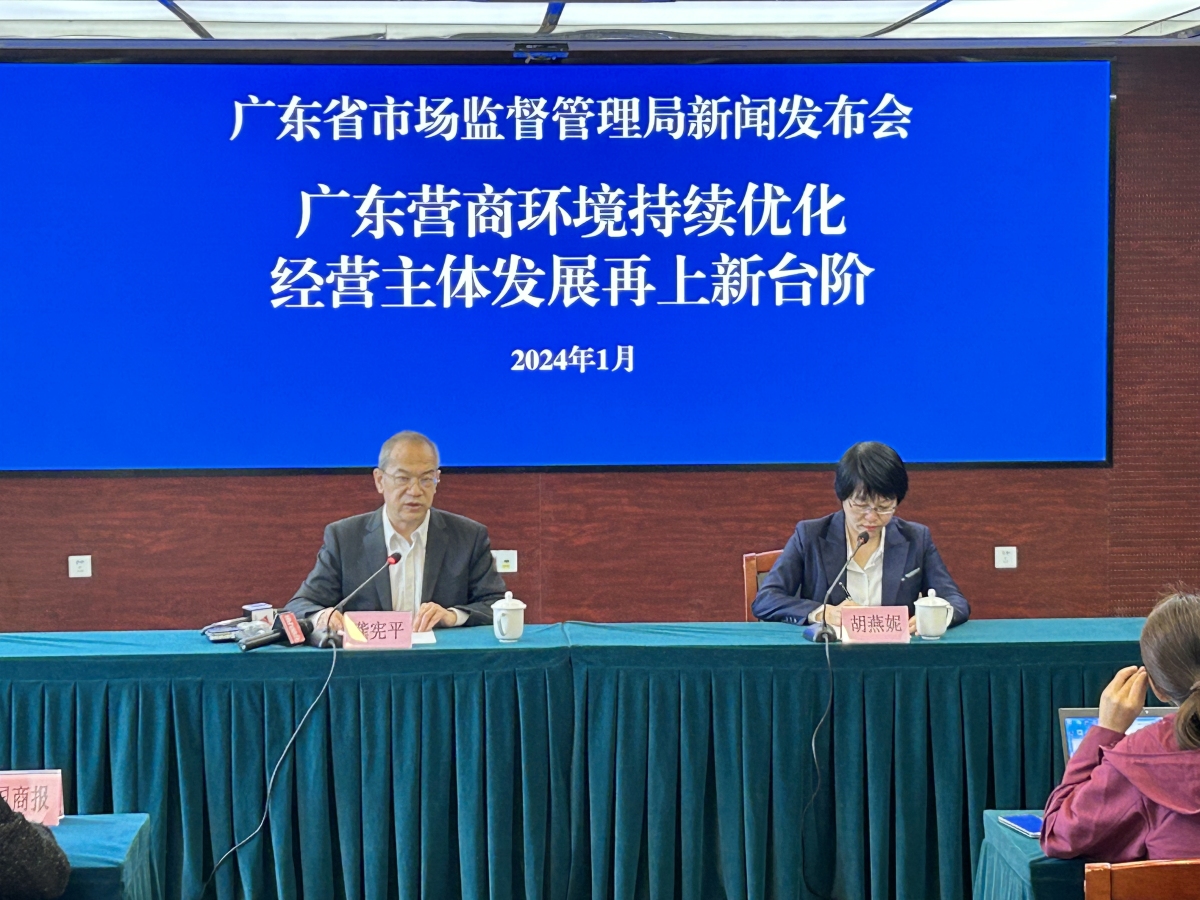 廣東省市場監督管理局二級巡視員龔憲平在發布會上介紹,2023年,廣東經營主體發展呈現「四個全國第一」和「四個快速增長」的顯著特點。「四個全國第一」方面,一是經營主體總量全國第一,全省登記在冊經營主體比上年末凈增172.8萬戶,增長10.6%,增速為近五年最高。二是企業總量全國第一,全省登記在冊企業780.8萬戶,佔全國七分之一,2023年新登記企業120.4萬戶,同比增長15.1%。三是外資企業總量全國第一,全省登記在冊外資企業19.9萬戶,佔全國四分之一,2023年新登記2.1萬戶,同比增長40.8%。四是民營經濟主體總量全國第一,全省登記在冊民營企業724.8萬戶,同比增長9.4%,個體工商戶1019.9萬戶,同比增長12.2%。