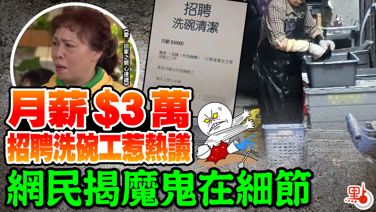 近期網上一則月薪3萬元聘請洗碗清潔工的廣告,引起熱議。有網民認為儘管這份工作的月薪高達$3萬,看似輕鬆簡單,但直言「魔鬼藏在細節裏」,認為唔易做;惟部分網民則認為工資可觀,不妨一試。