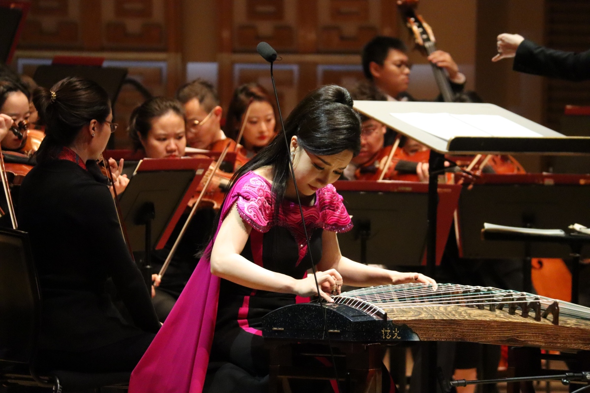 音樂會在序曲《幸福歡歌》中拉開序幕,優美的旋律和歡快的節奏,傳遞出新時代人們滿滿的幸福感與獲得感。第8屆中國音樂金鐘獎獲得者、青年琵琶演奏家江洋帶來的《絲路飛天》,將琵琶的韻味發揮得淋漓盡致,讓觀眾領略到古絲綢之路的壯麗和輝煌,感受到中華文化的博大精深;第12屆中國音樂金鐘獎獲得者、青年二胡演奏家高白帶來的《第五二胡狂想曲——讚歌》,以動人心弦的樂韻和優美而舒展的長調,熱情謳歌祖國大地的壯麗景色,抒發對祖國的無限讚美之情。