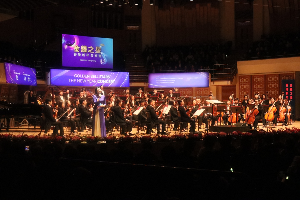 「金鐘之星」香港新年音樂會於昨晚(2日)在香港文化中心音樂廳舉行,現場星光璀璨、樂聲悠揚、掌聲不斷。此次音樂會由中國文學藝術界聯合會指導,中國音樂家協會、香港歌劇院共同主辦,指揮家陳琳執棒中央音樂學院交響樂團,聯袂廖昌永、莫華倫、石倚潔、王慶爽、江洋、劉艷花、譚天樂、程皓如、黨華莉、徐曉晴、高白、李哲翔等兩地音樂家,以一場音樂盛宴獻上濃濃新年祝福,唱響內地與香港共奮進、向未來。