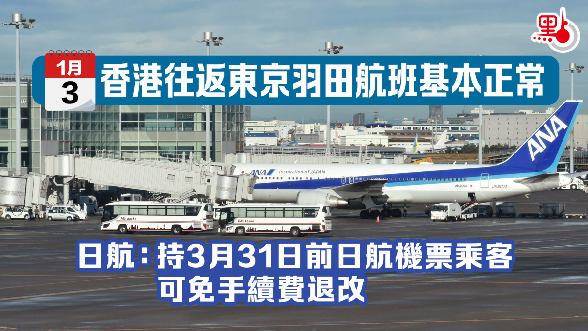 機管局表示,受羽田機場事故影響,昨日(2日)有5班來往香港和羽田航班受影響,部分要中途折返。
