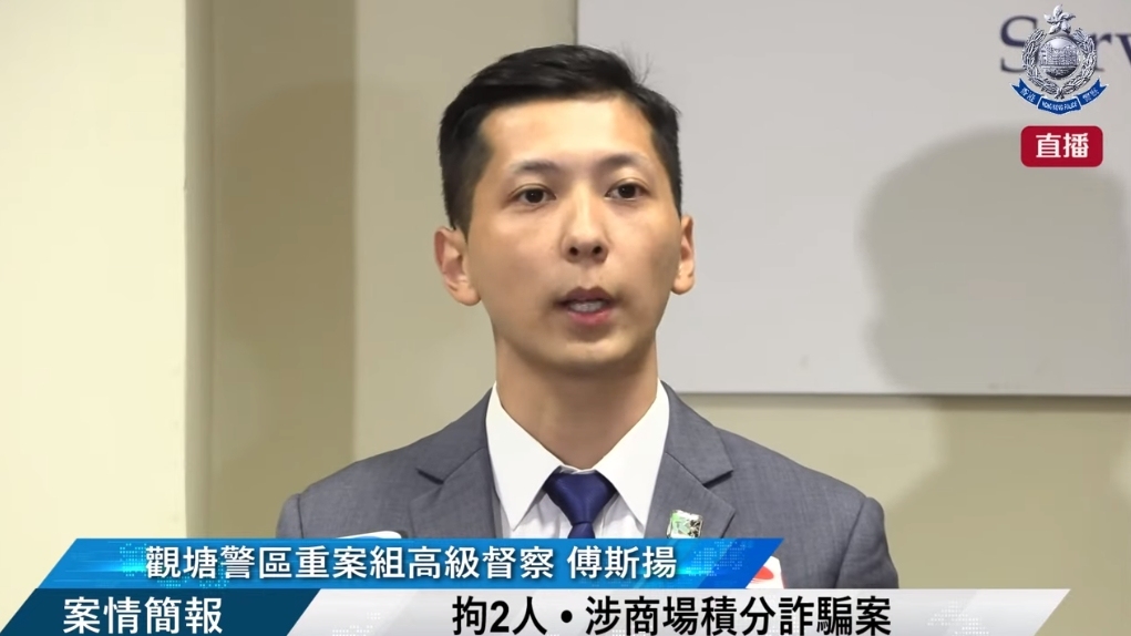 傅斯揚指,被捕人分別為28歲姓黎報稱司機,及29歲姓朱報稱無業的女子,二人為情侶關係。被捕人由去年10月至今,於東九龍3個大型購物商場以篡改購物收據犯案,涉及可換購物積分近10萬元。行動中警方檢獲部分犯案得益贓物,及被捕人犯案時所穿衣物。