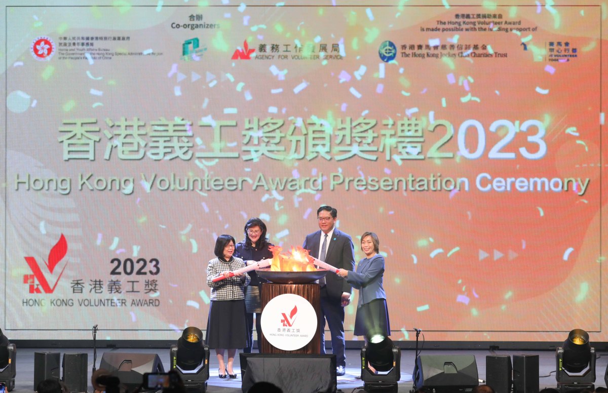 【點新聞報道】民政及青年事務局與義務工作發展局合辦的「香港義工獎2023」,於今日(3日)舉行頒獎禮,嘉許本地傑出義工及青年義工/團隊、企業、非商業機構、義工協作計劃獎、屋苑及學校,表揚他們對義務工作的貢獻和成就。行政長官李家超夫人暨義工總領袖李林麗嬋、民政及青年事務局副局長梁宏正、香港賽馬會董事龔楊恩慈和義務工作發展局主席彭韻僖律師擔任主禮嘉賓。