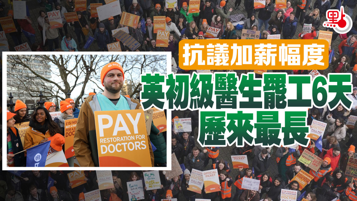 英格蘭的初級醫生周三響應工會英國醫學會的號召,展開六天大罷工,是國家醫療服務(NHS)成立75年以來最長的連續罷工行動,要求政府大幅加薪35%。