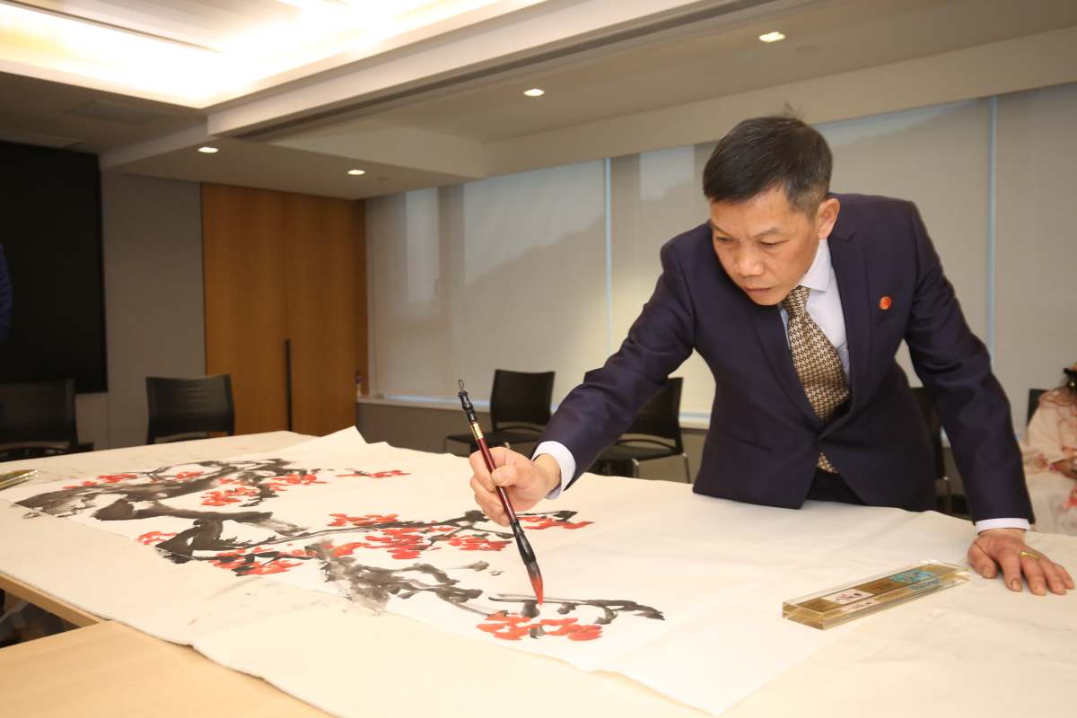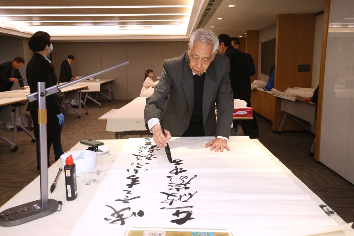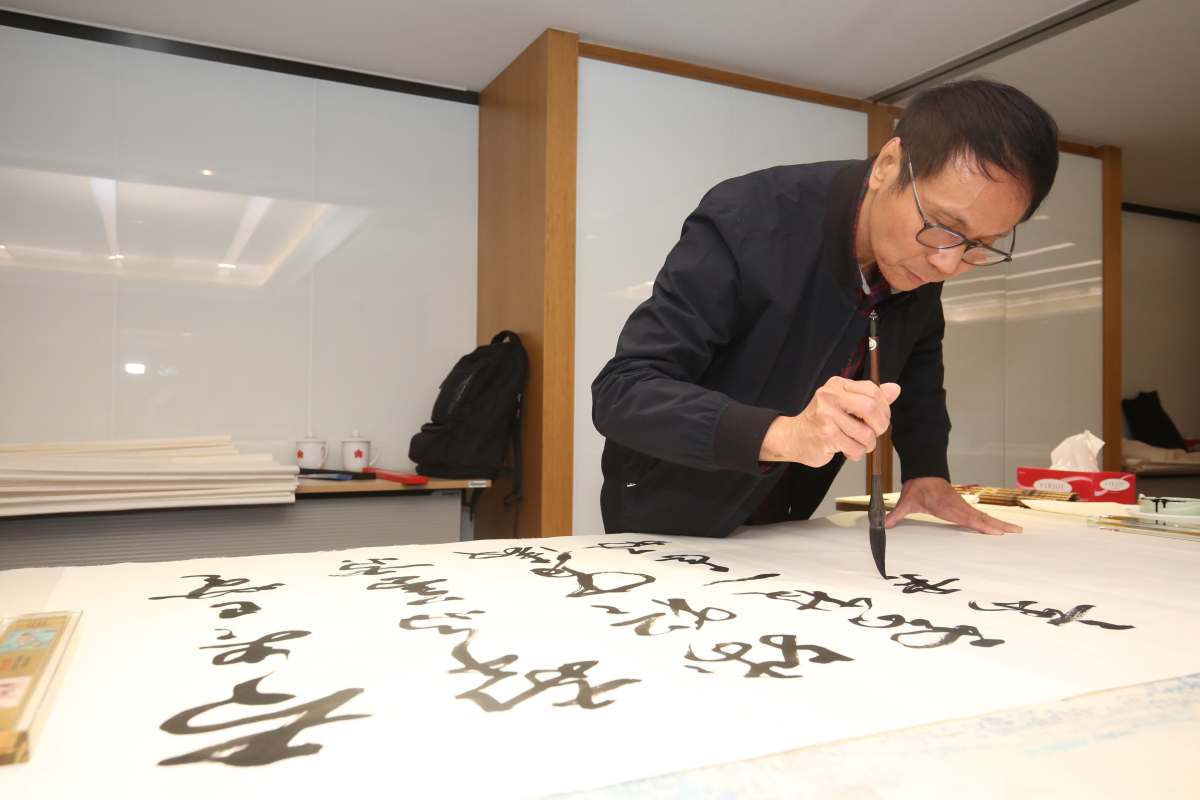 當天正值農曆小寒,但筆會現場暖意濃濃,墨香四溢。行書、草書、隸書、水墨花鳥、鬥方、春聯,書畫家們以筆墨寄心意,以字畫抒真情,將對祖國和大灣區的真摯祝福傾注於筆端,即興創作了多幅書畫作品。一幅幅遒勁有力、清新飄逸的書法作品,一幅幅形象生動、意境深遠的水墨畫在台案上展開,充分展現中國傳統藝術之美。