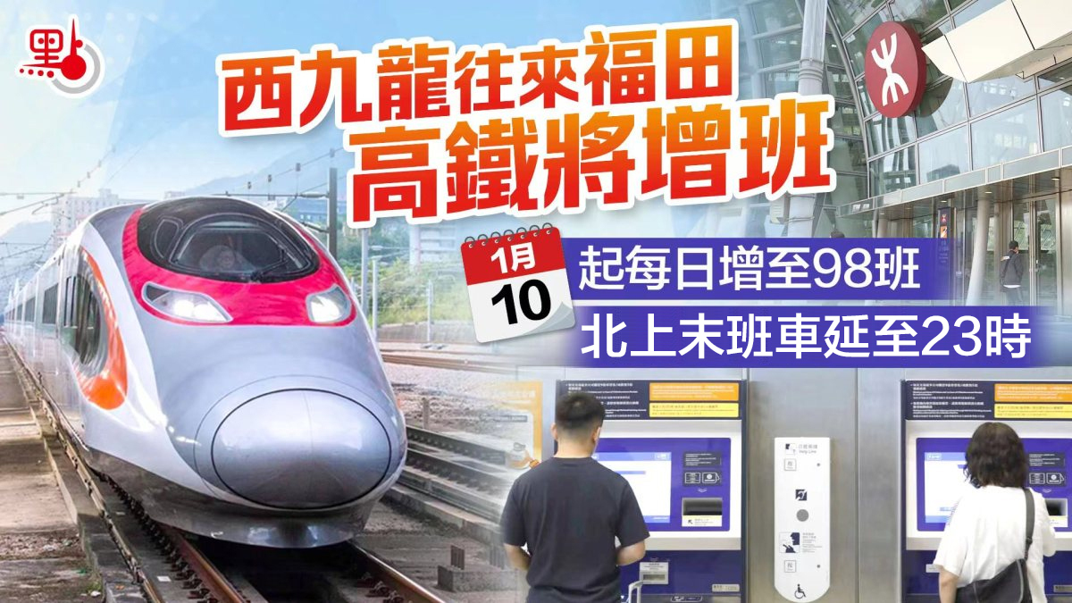 為方便港人北上和內地旅客南下,列車運行圖調整後,深圳福田站往返香港西九龍站的班次將由每日74趟增加至98趟,並延後部分短途列車的末班車開出時間,福田往香港西九龍末班車延後至22時31分,香港西九龍往福田的末班車延後至23時。亦是說,市民和遊客晚上11點仍可以從香港搭高鐵北上。