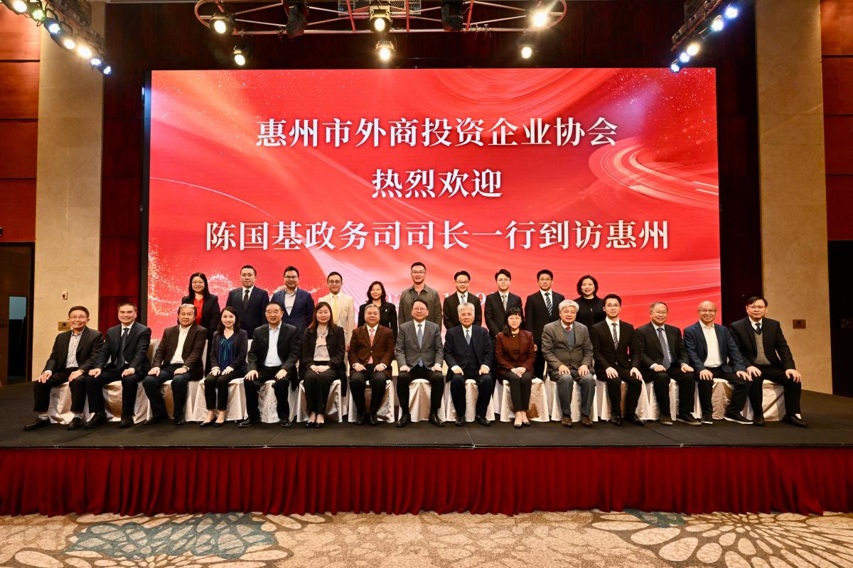 陳國基表示,多家港資企業正正是推動惠州經濟發展、促進惠州與香港兩地經貿聯繫的重要力量。自國家頒布《粵港澳大灣區發展規劃綱要》以來,香港與大灣區其他城市一直緊密合作,貫徹落實「優勢互補、互利共贏」的原則──這亦是香港與所有省市合作的原則──打造大灣區成為一個宜居、宜業、宜遊的國際一流灣區。