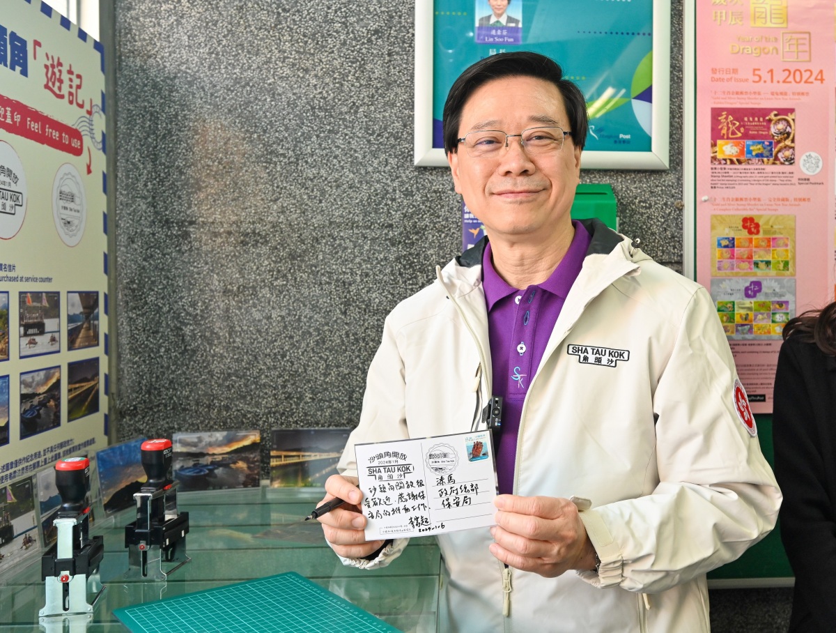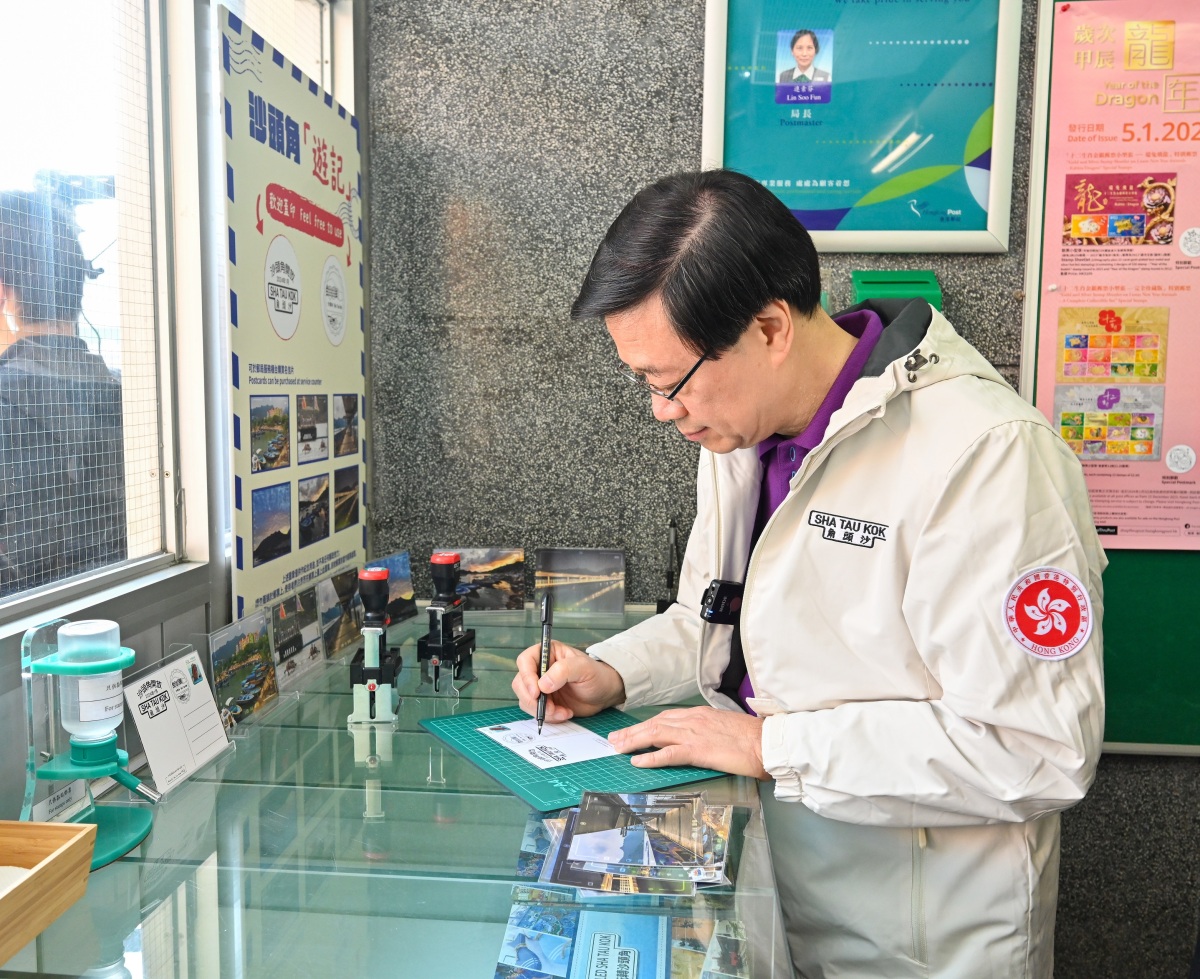 【點新聞報道】行政長官李家超日前(1月6日)主持第二期沙頭角開放計劃啟動禮,隨後參觀沙頭角特色景點,以及主持龍舟表演的鳴笛儀式,並到訪沙頭角郵政局,購買以沙頭角攝影比賽得獎作品製成的明信片,蓋上由保安局設計的特色紀念印,寄給保安局人員,感謝他們推廣開放計劃的工作。
