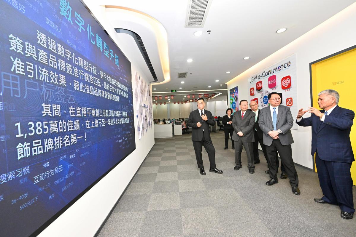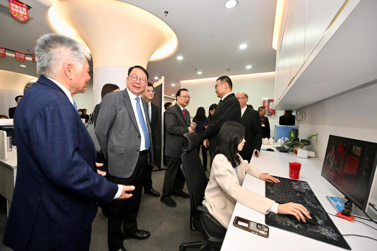 陳國基中午結束廣州行程,轉往惠州。他先與多家當地港企的代表餐敘,就港資企業在惠州以至整個大灣區的最新發展交流意見,之後參觀其中一家港企——旭日集團,了解其在內地投資製造業到成功轉型至現代服務業的歷程,包括近年積極拓展數字化經營。