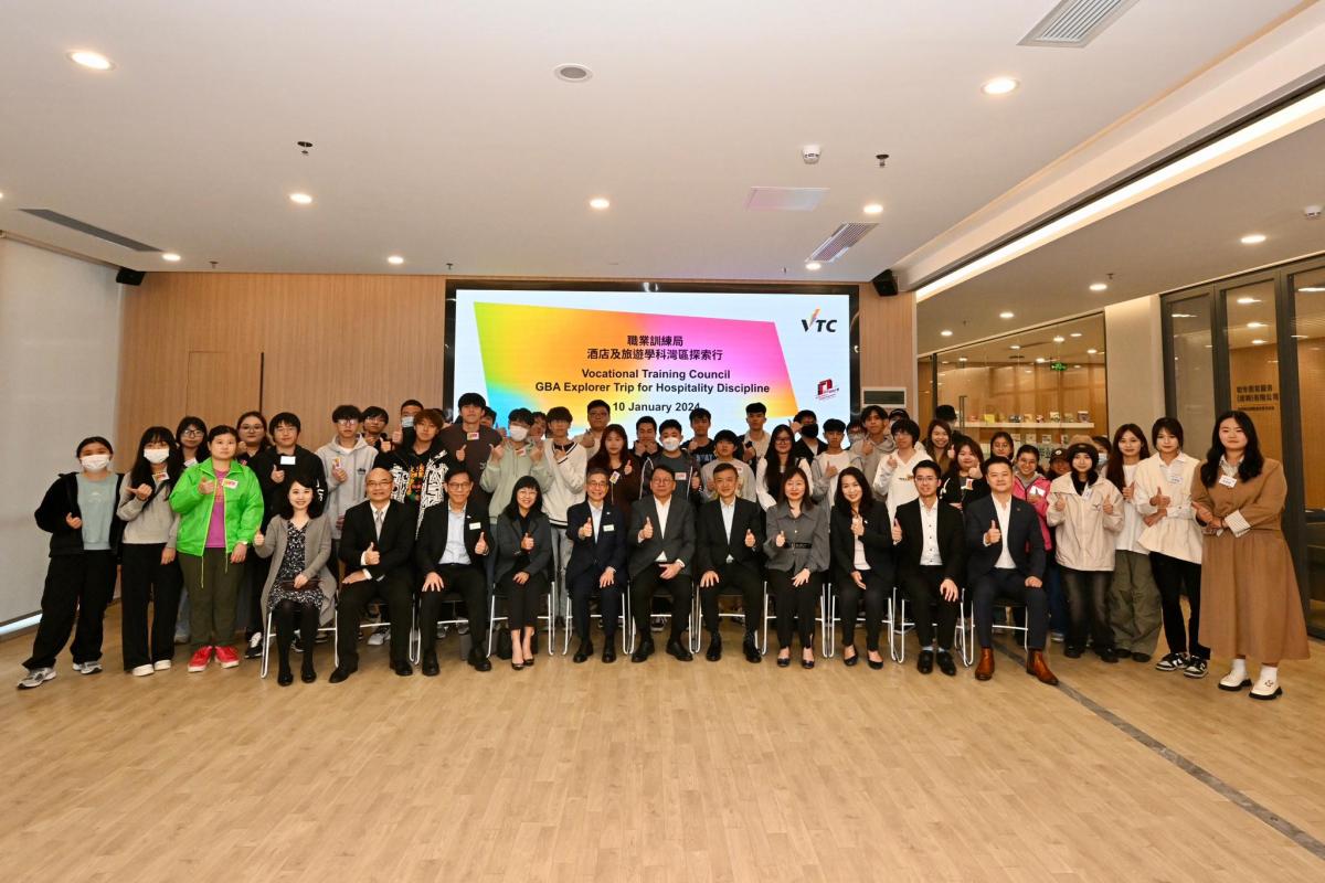 早上,陳國基參觀香港職業訓練局首個內地運作中心──職專教育服務(深圳)有限公司,聽取職訓局主席戴澤棠和執行幹事唐智強介紹中心的運作情況。他亦與職訓局學生和深圳職業技術大學學生傾談,了解學生共同開展的不同科研項目,並就深化港深兩地職專教育合作交流意見。他欣悉職專教育服務(深圳)有限公司自去年正式啟動以來運作暢順,積極擔當職專教育交流平台的角色,推動職訓局與內地院校、企業和機構合作,通過課程交流、專題研習、工作實習等活動,協助更多香港青年了解國家發展,並讓內地青年認識香港職專教育和發展出路,其中包括通過去年施政報告公布的職專畢業生留港計劃,在職訓局指定全日制高級文憑課程畢業後留港一年,尋找相關專業的工作。