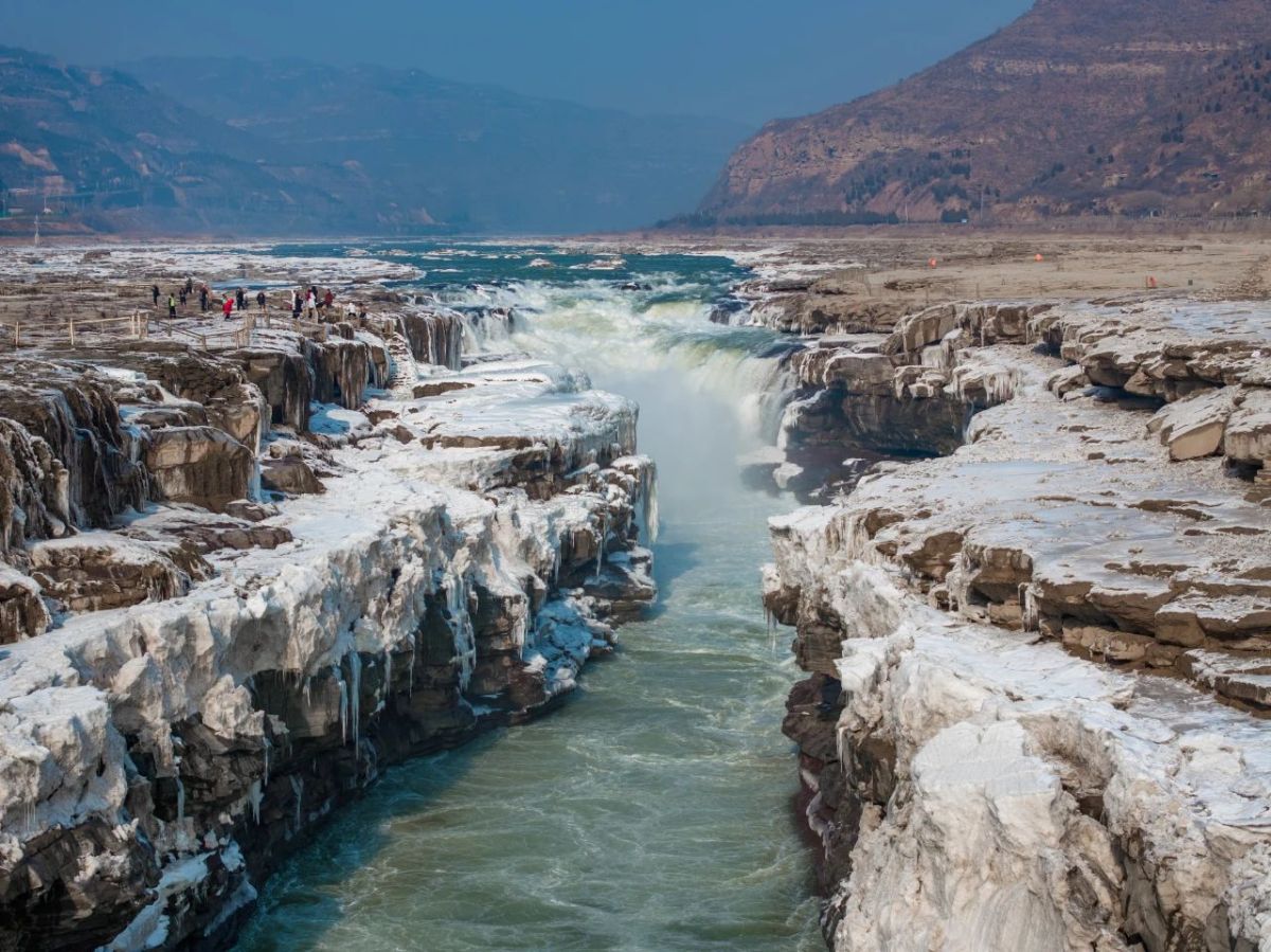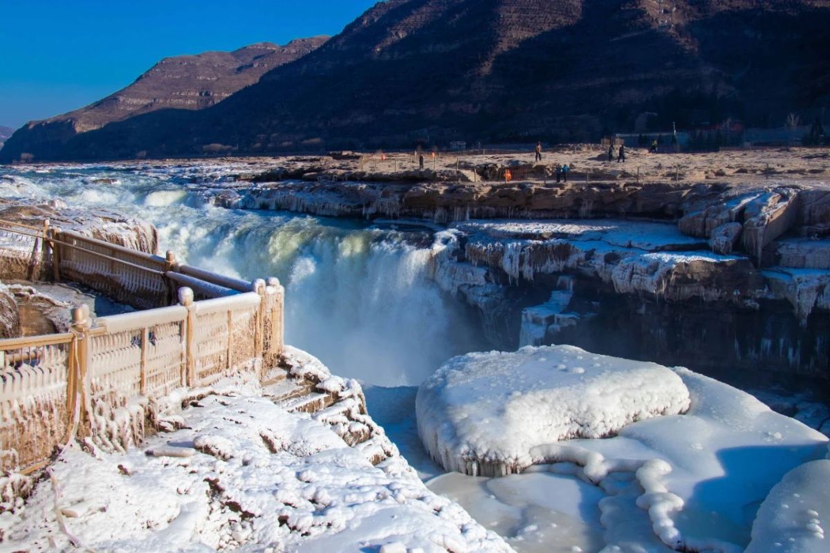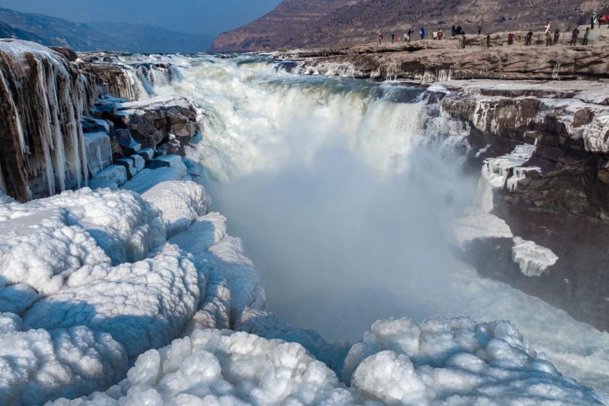 據悉,黃河壺口瀑布旅遊區(陝西側)是集壺口瀑布、河瀑峽谷、龍王辿、十里龍槽、孟門山、大禹廟、古渡口等為一體的文化旅遊景區。在這裏,遊客不僅可以憑欄賞黃河奇景,還可以觀賞演出、品陝北美食、體驗窯居文化。有遊客表示,冬天來到壺口瀑布沒想到竟然遇到罕見的「綠水」景觀,碧綠的河水在晨光的照耀下緩緩流淌,瀑如巨幕一般垂落,水流凝結成千奇百怪的冰雕,冰之花朵盛開在空中,彷彿置身於一個夢幻的世界,讓人心曠神怡,流連忘返。