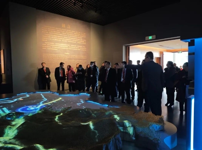 在北京大運河博物館館中,考察團登上「運河之舟」暢遊運河,覽古今同輝。大家沉浸在文物的魅力中,聆聽解說員講述大運河2500多年的歷史與人與水、城、河之間的共生共榮,領悟大運河的發展演變歷程、大運河與北京的緊密聯繫、運河沿線豐富的人文歷史價值內涵。